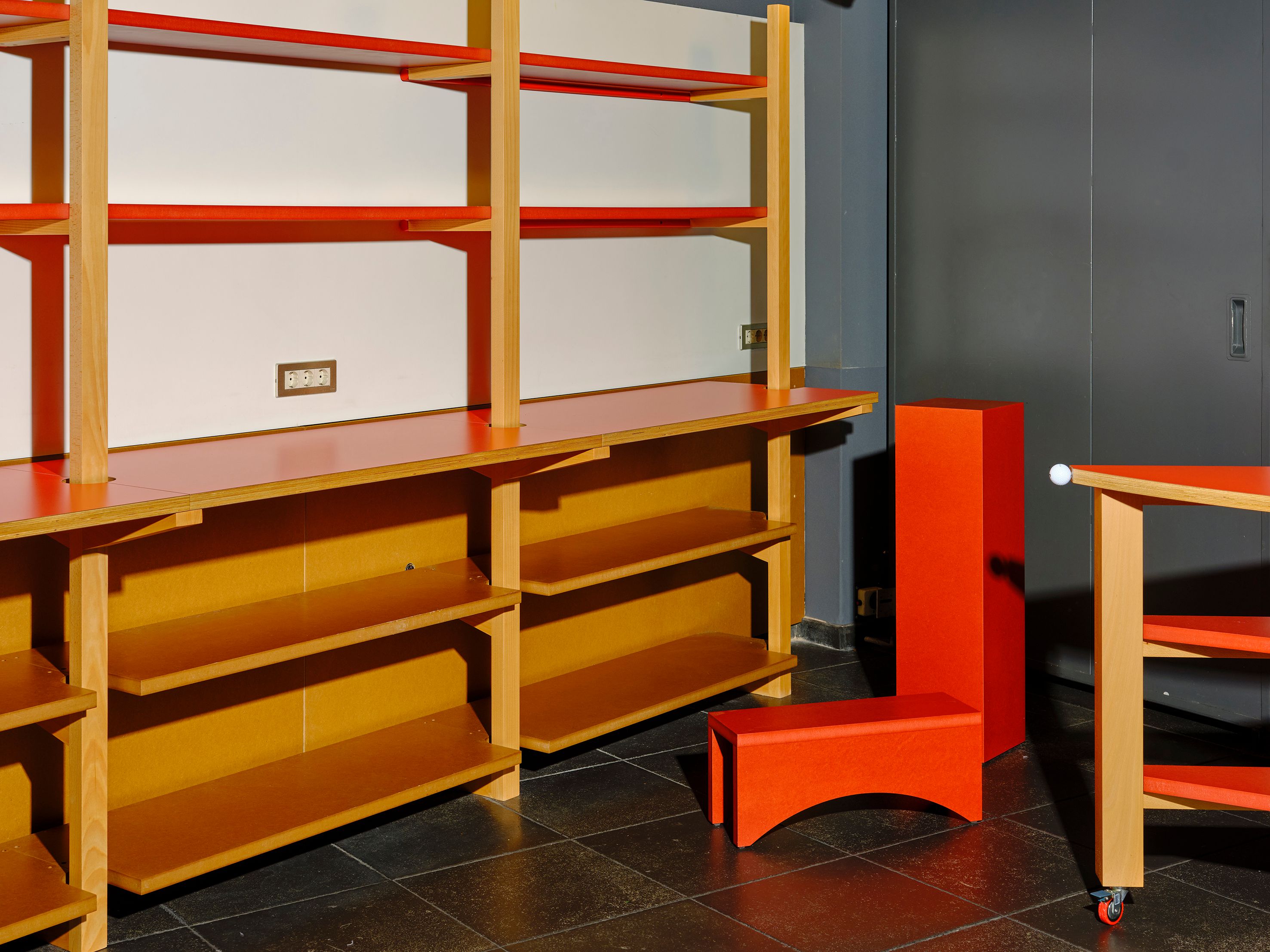 Red in all its variants, descompositions of the Camper logo, disproportionate Manolitos, wheels and golf balls became the aim and the concept of the whole new furniture.
