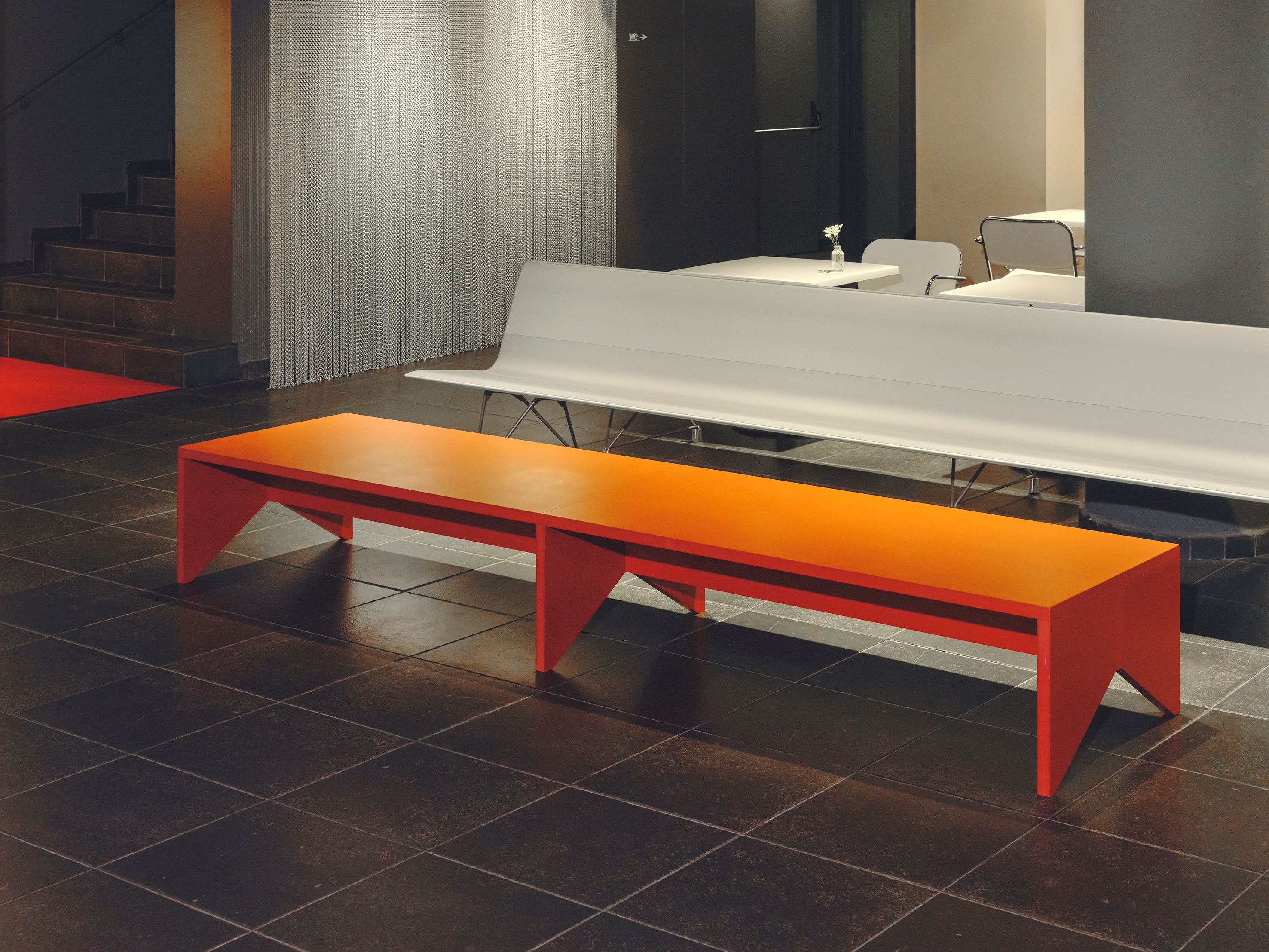 ATA is a bench system made up of 2 A-shaped leg structures that are joined to a T-shaped beam that can measure from 60 to 220cm in length.