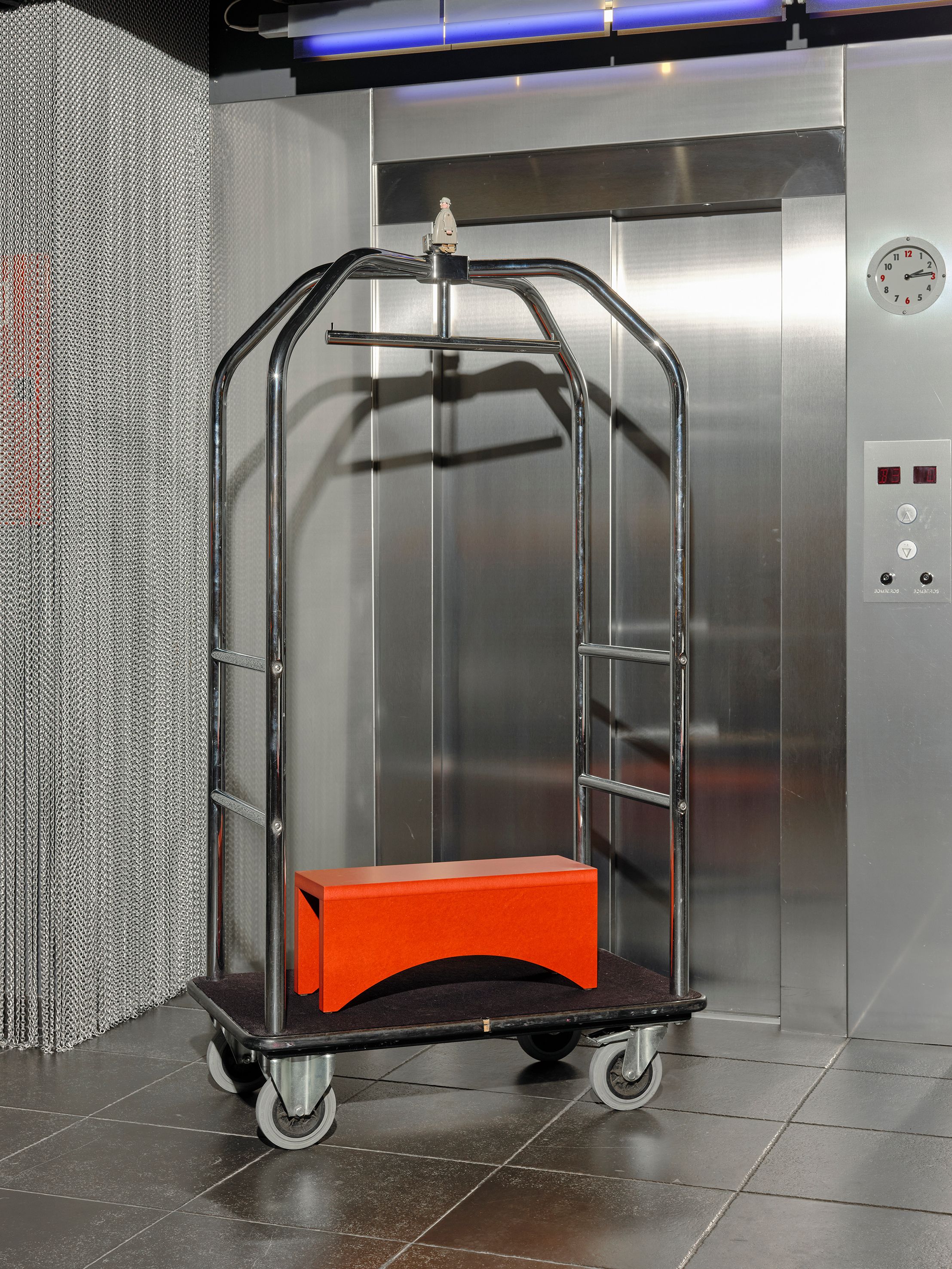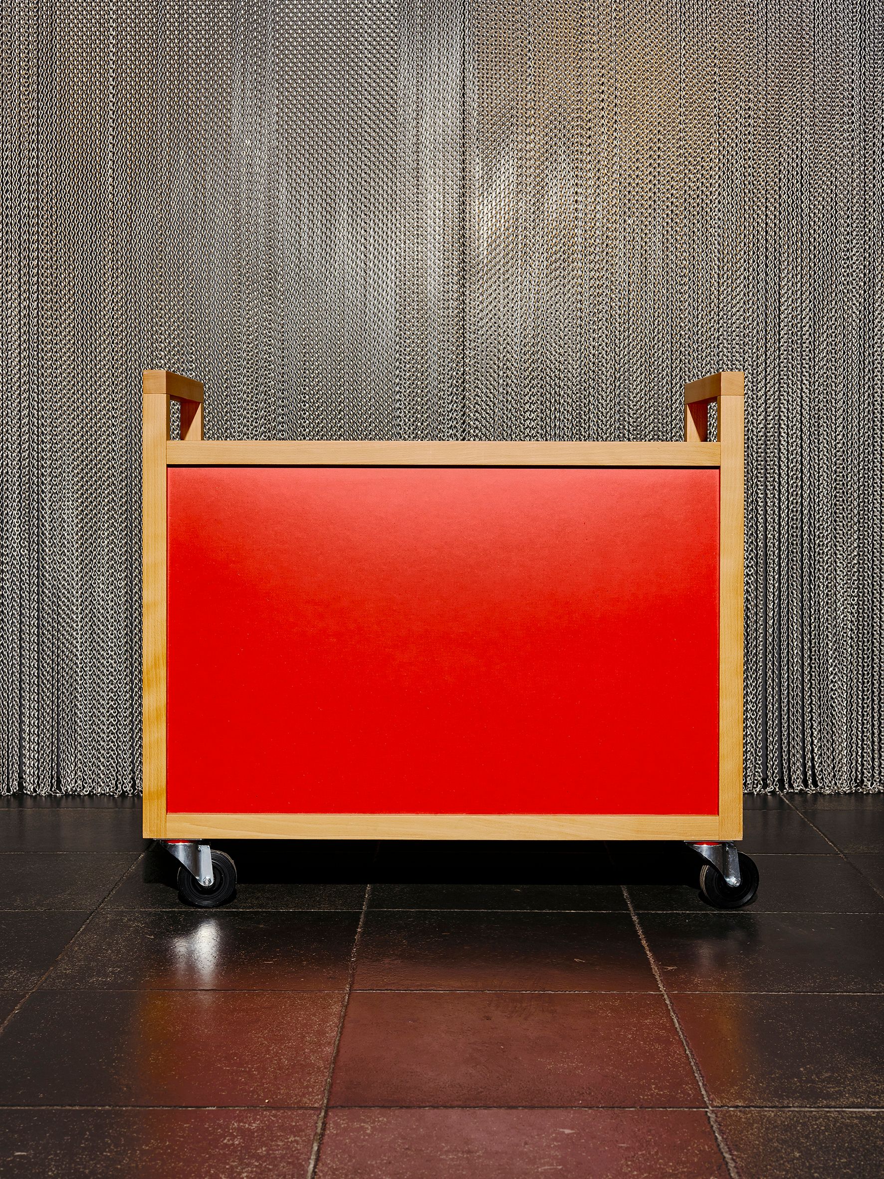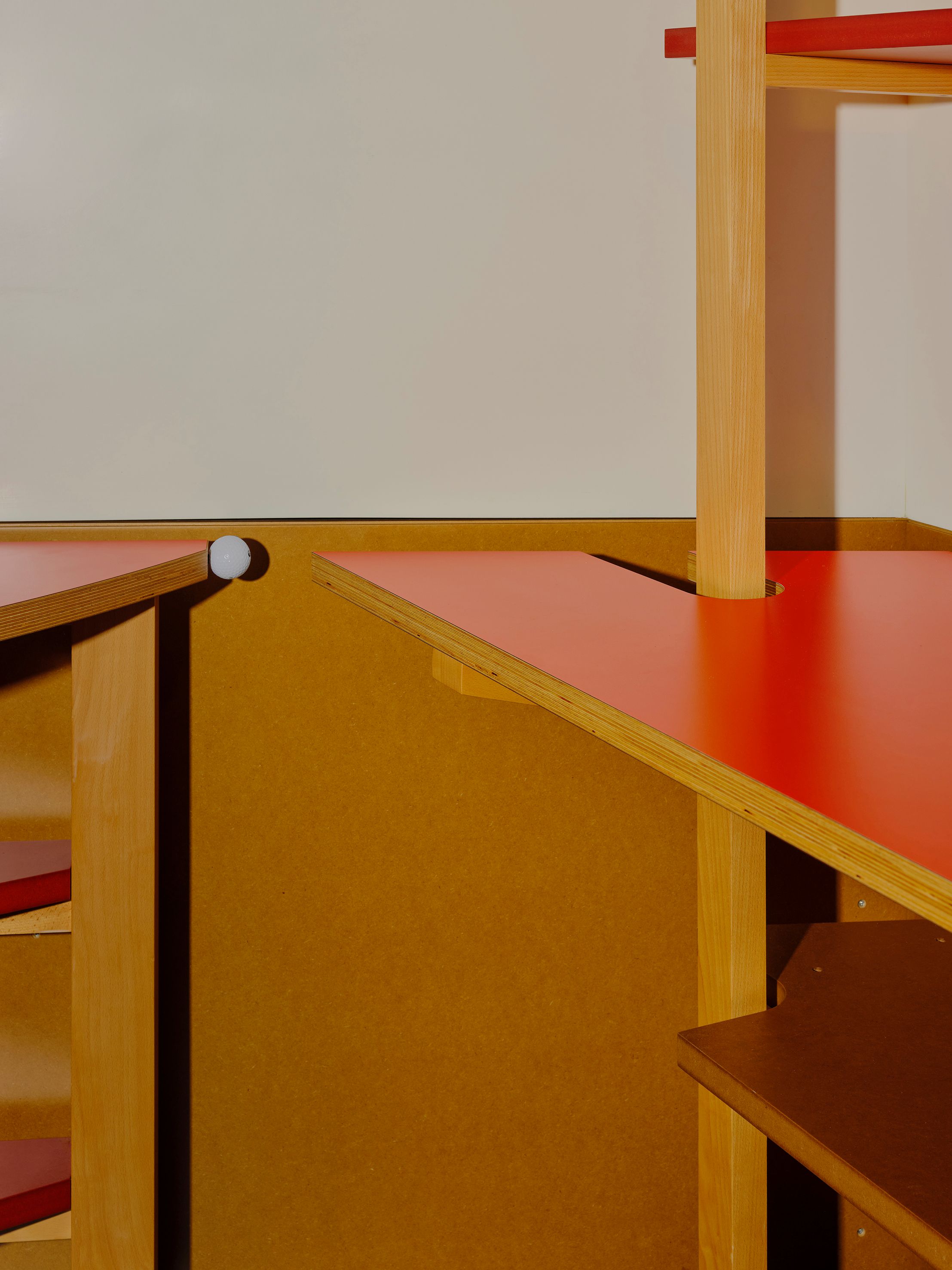 Manolito is a reinterpretation, a synthesis of these objects led to the domestic sphere. The result is a very simple object without a clear function. It is a small bookcase unit, a stool, a small table, or a step to easily reach higher areas.