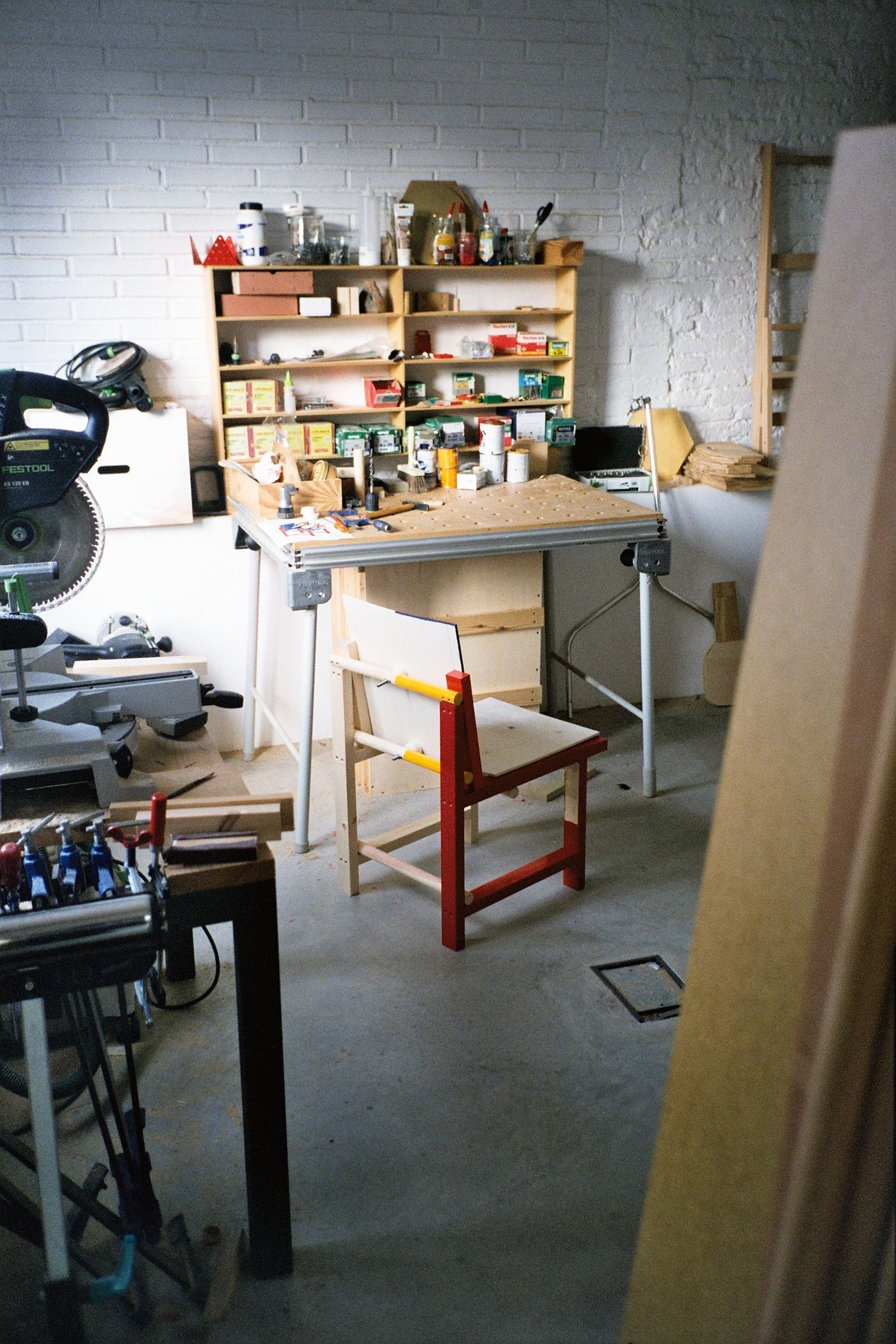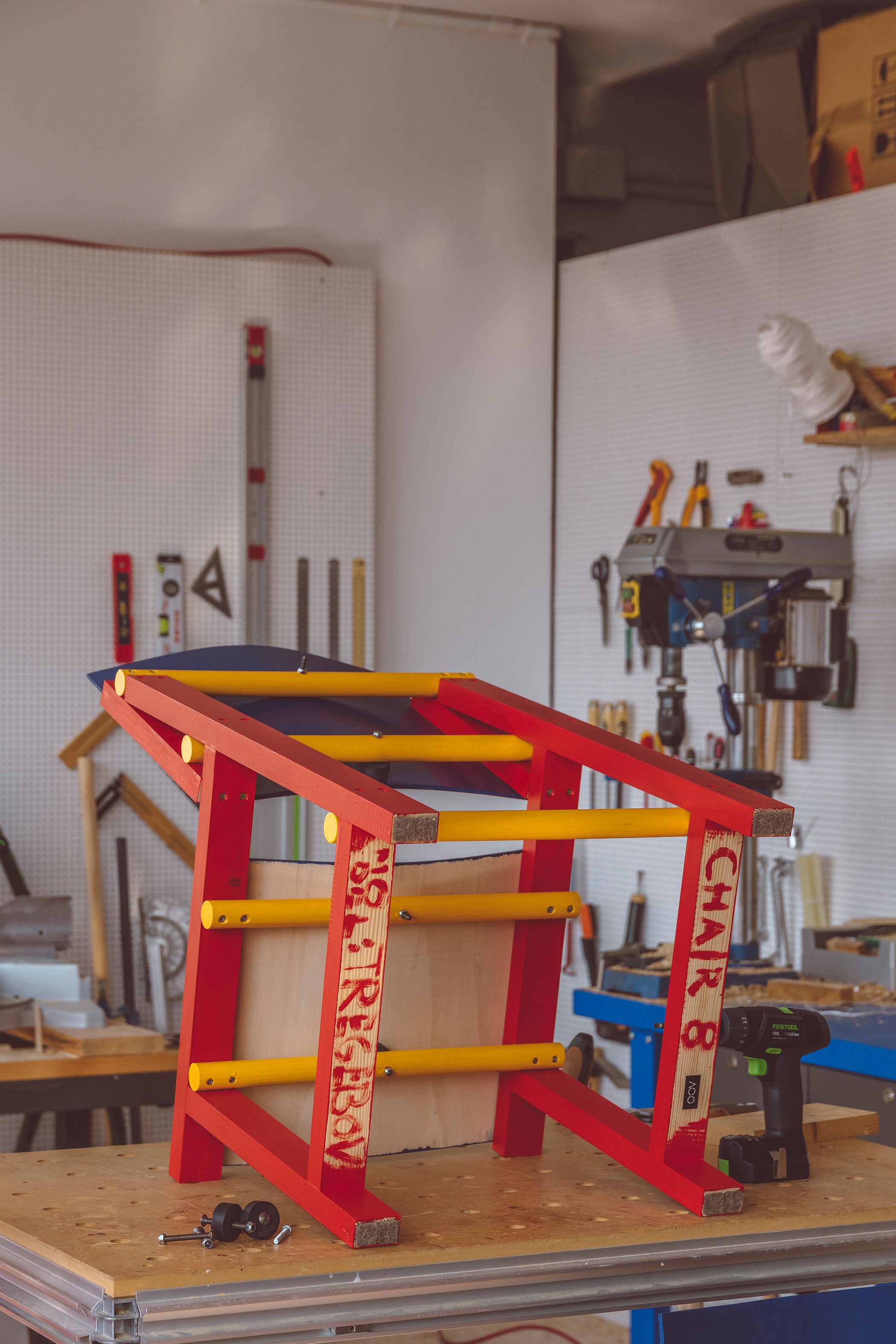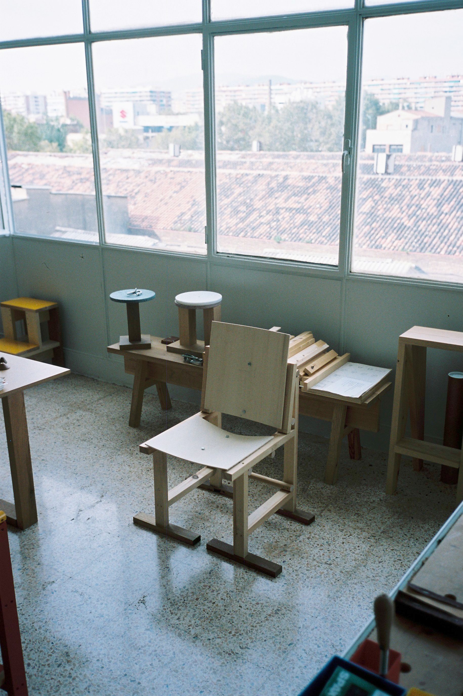 Construction workers used to build a small stool made with 4 or 5 pieces of wood. Its shape and size can vary slightly, but it's always something simple, basic and crude.