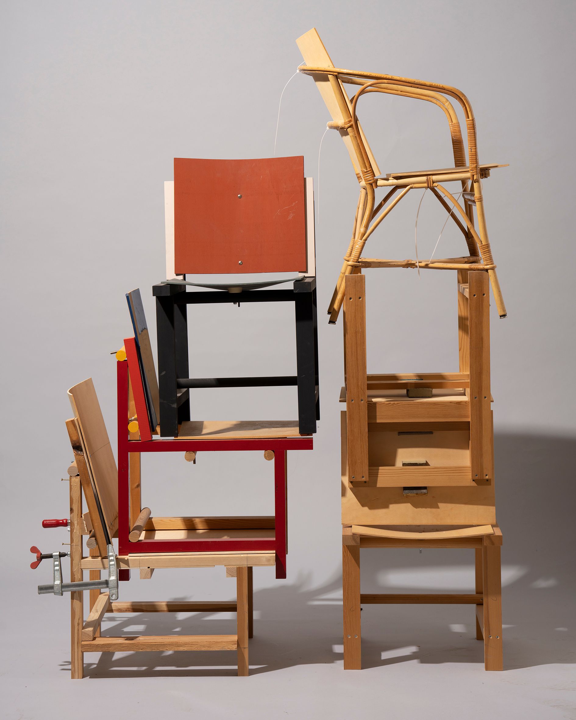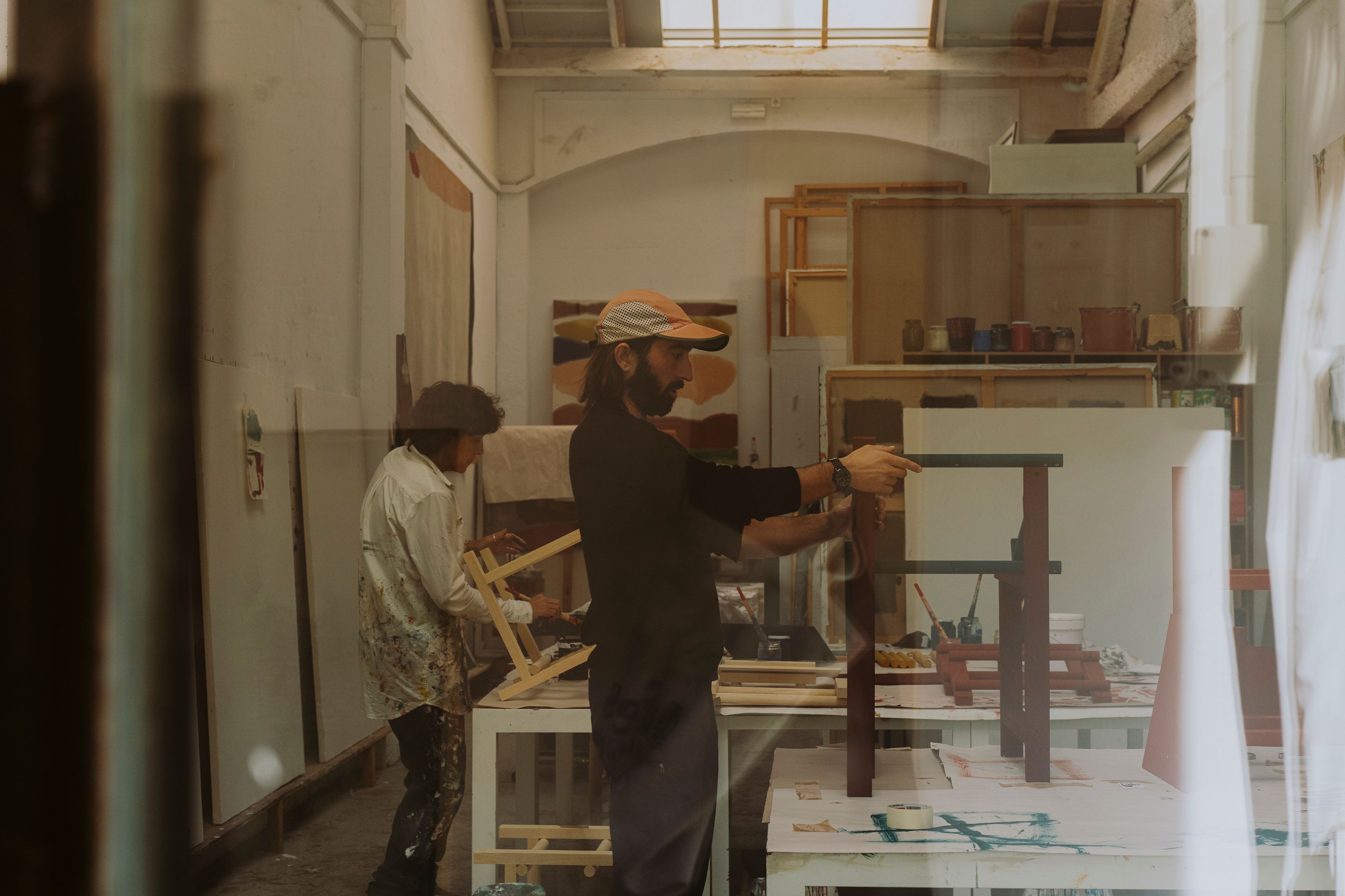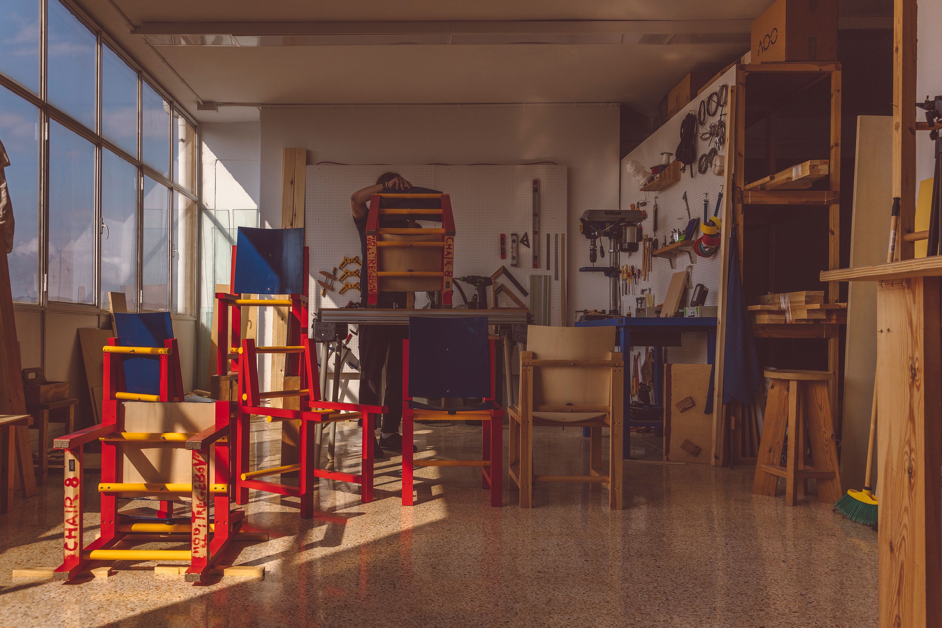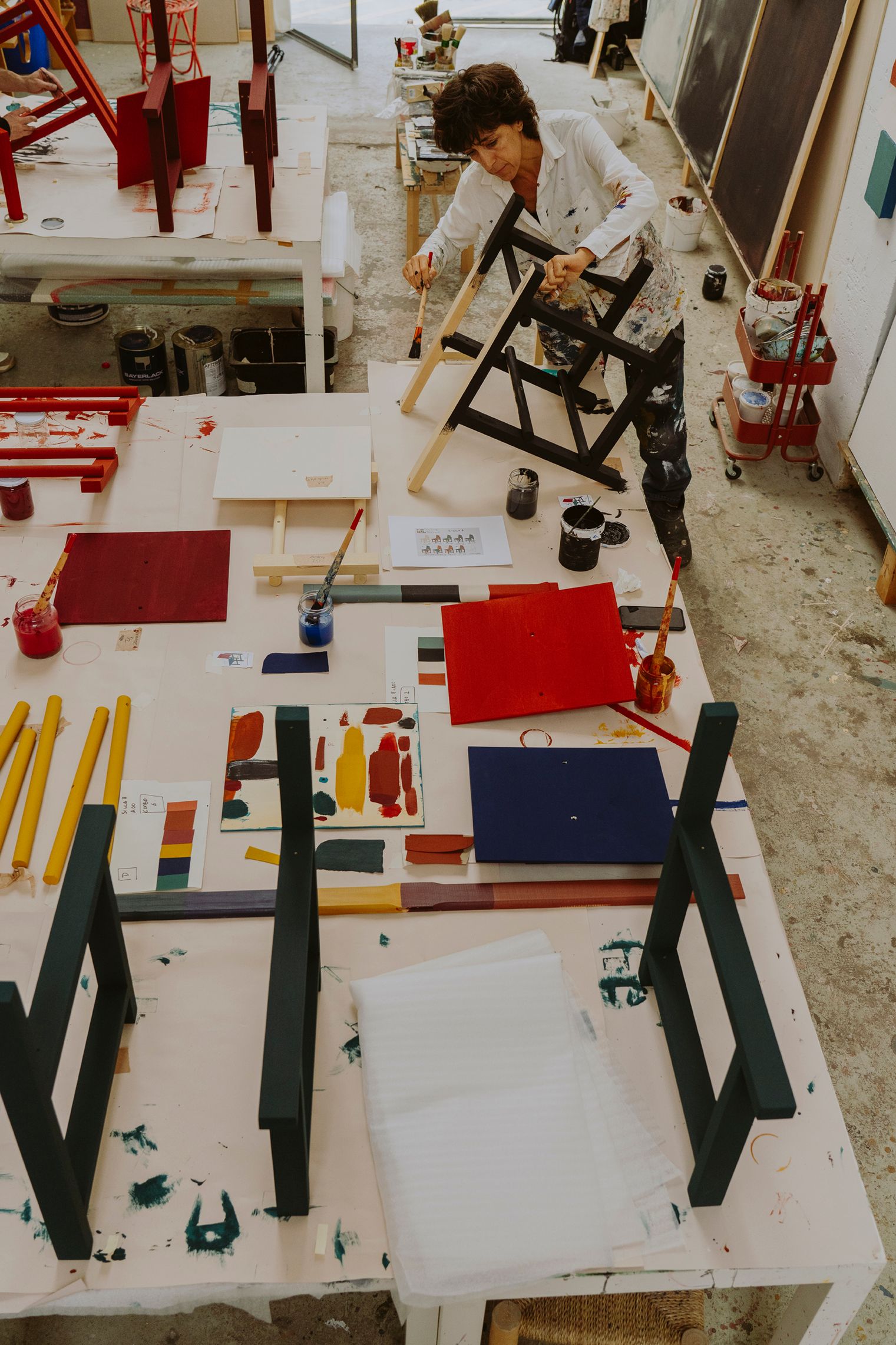 Construction workers used to build a small stool made with 4 or 5 pieces of wood. Its shape and size can vary slightly, but it's always something simple, basic and crude.