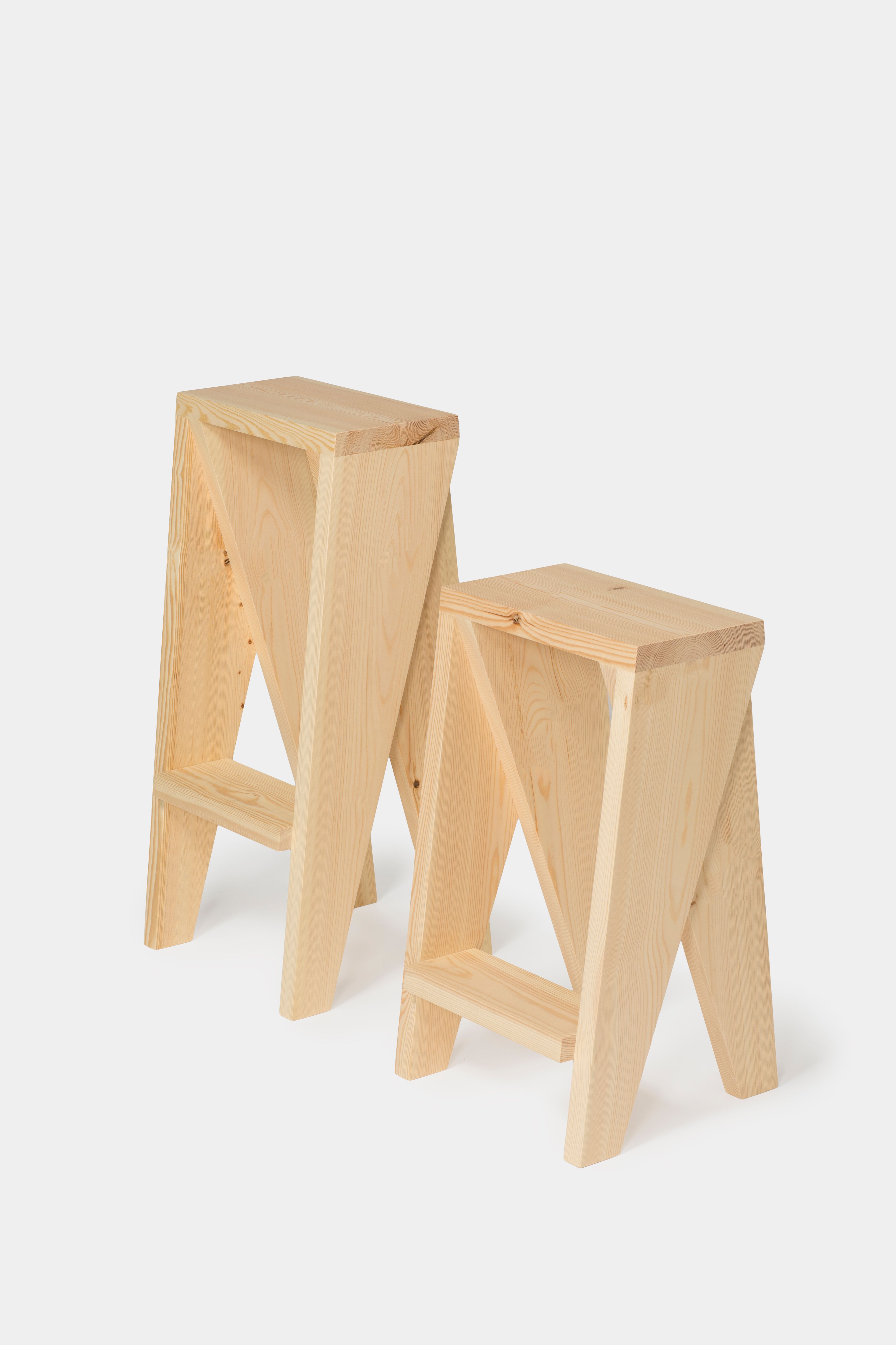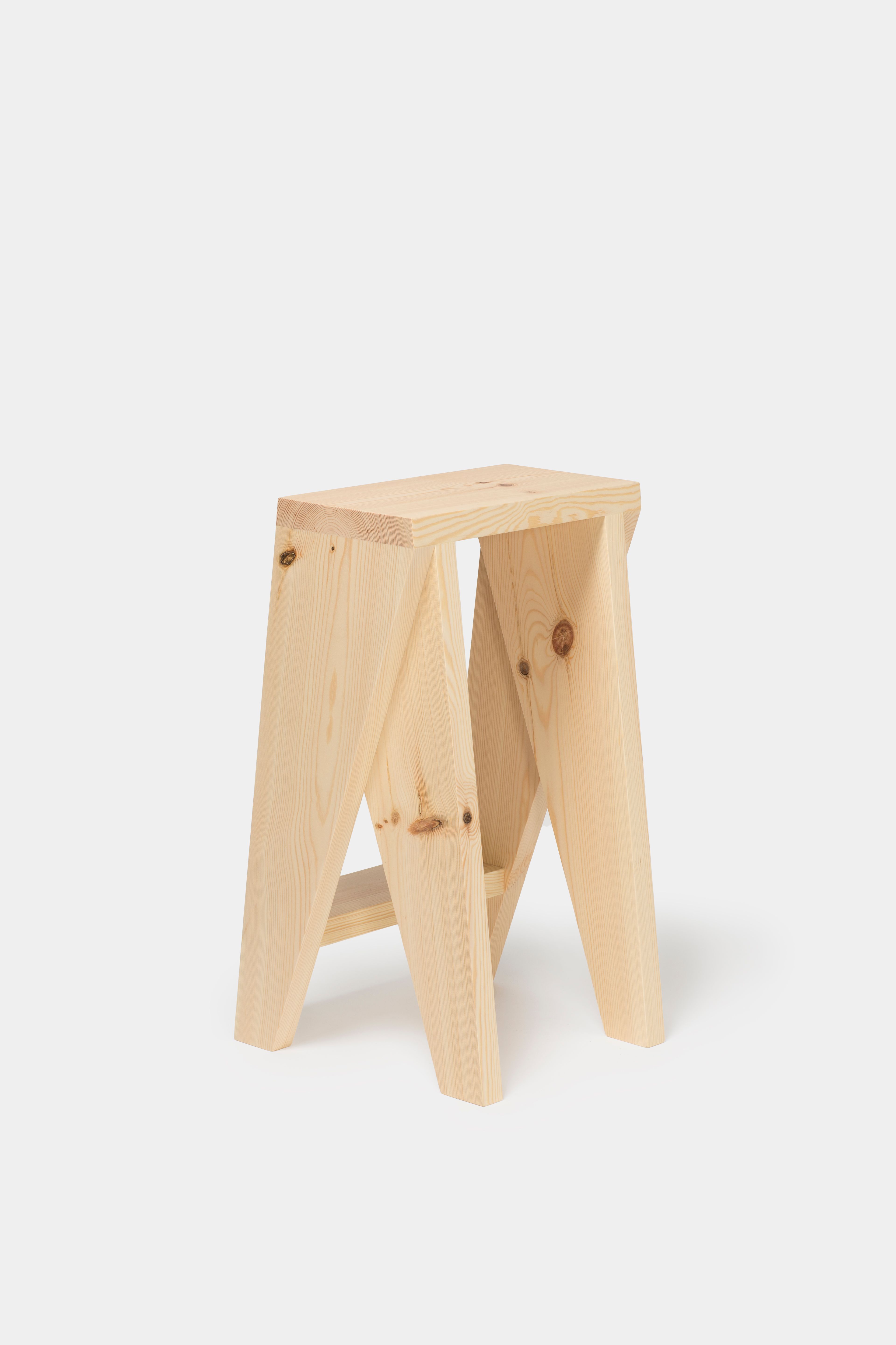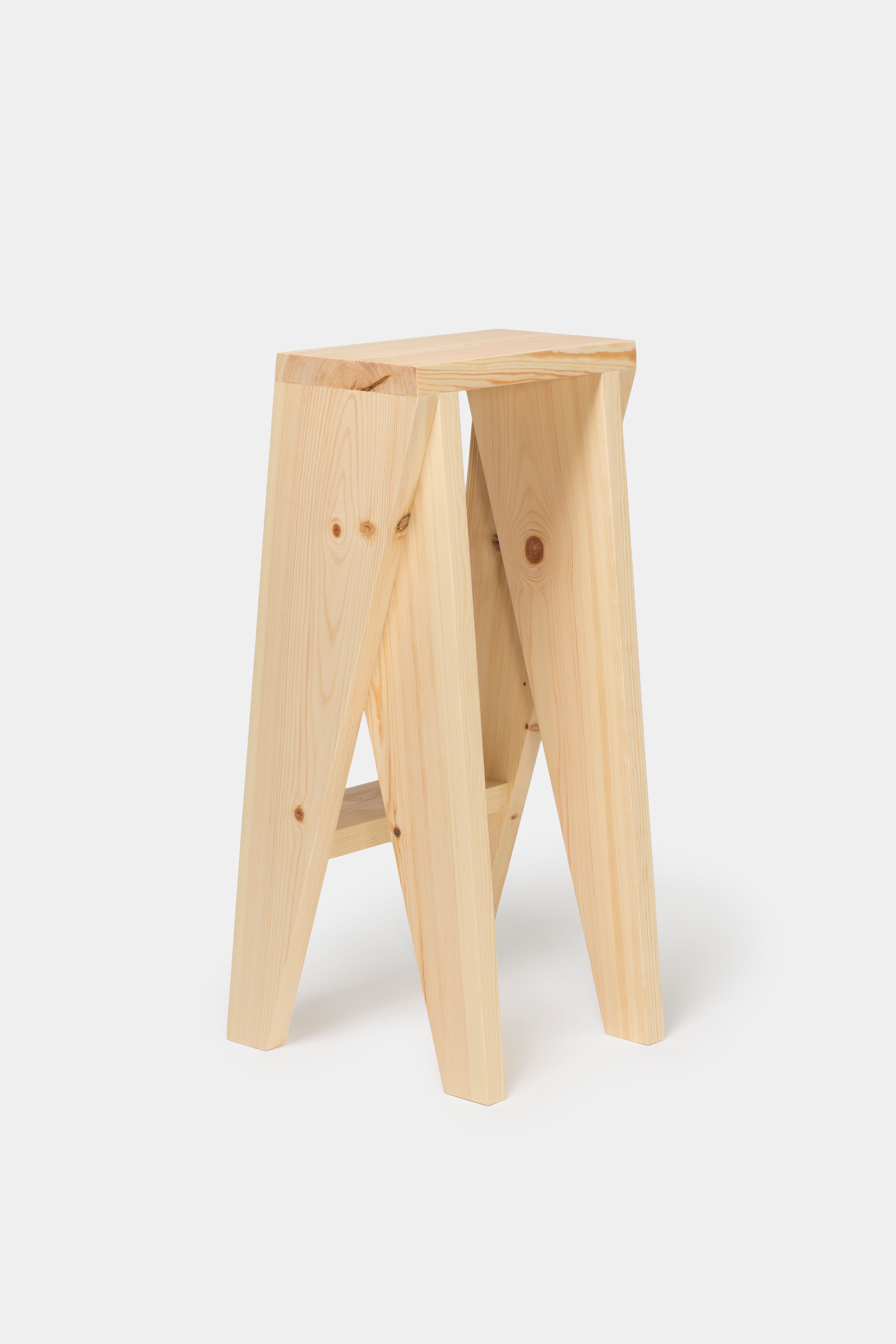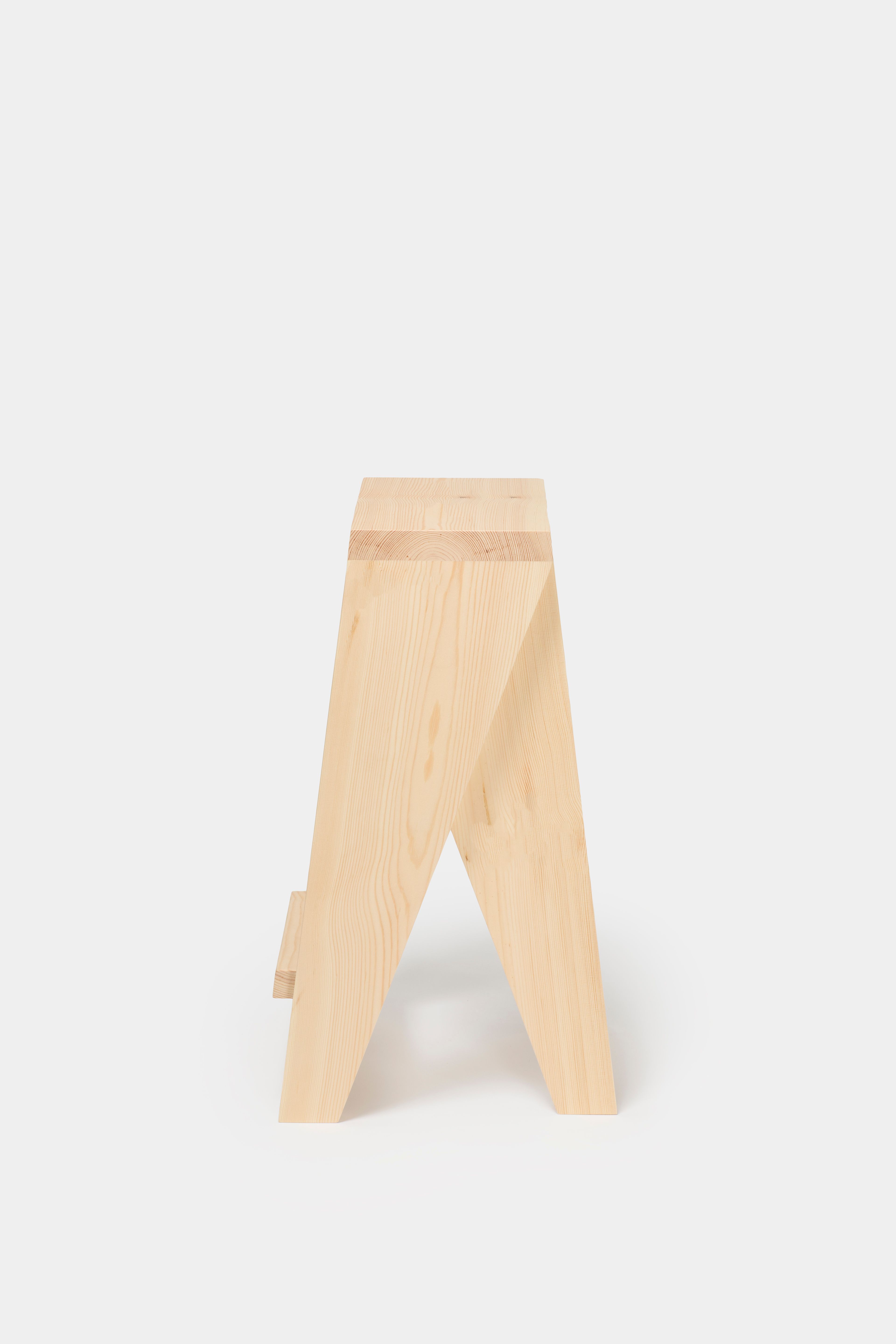 The result includes a pedestal with six different color finishes, a magical container that is red on the outside and black on the inside, a version of the Ikea Lack table but made of solid oak, a wedge-shaped bookshelf in solid iroko, a version of the Manolito stool in solid cherry, and a disproportionate die.