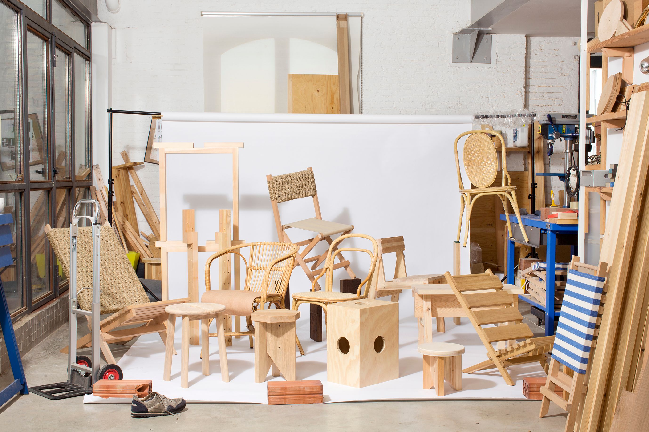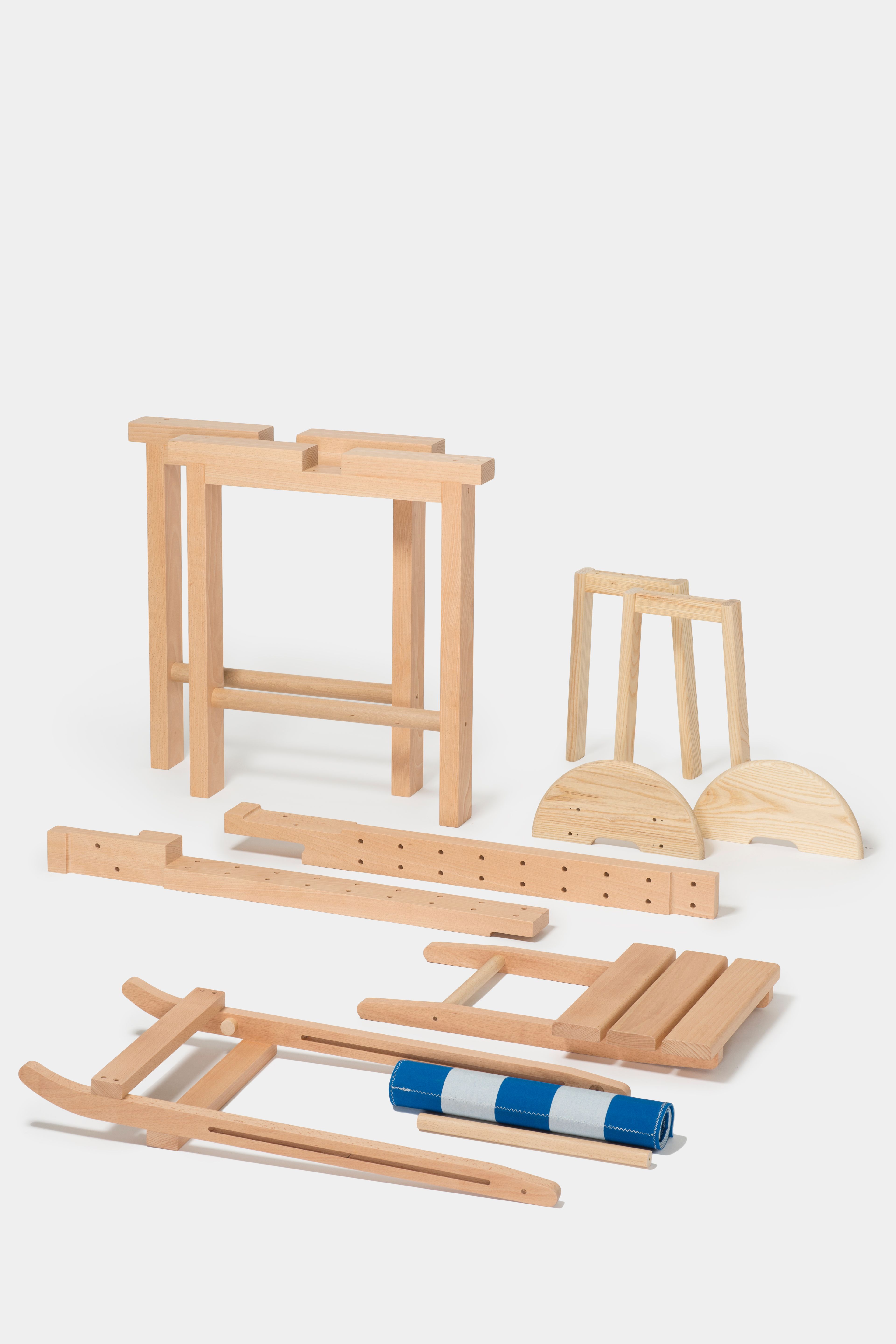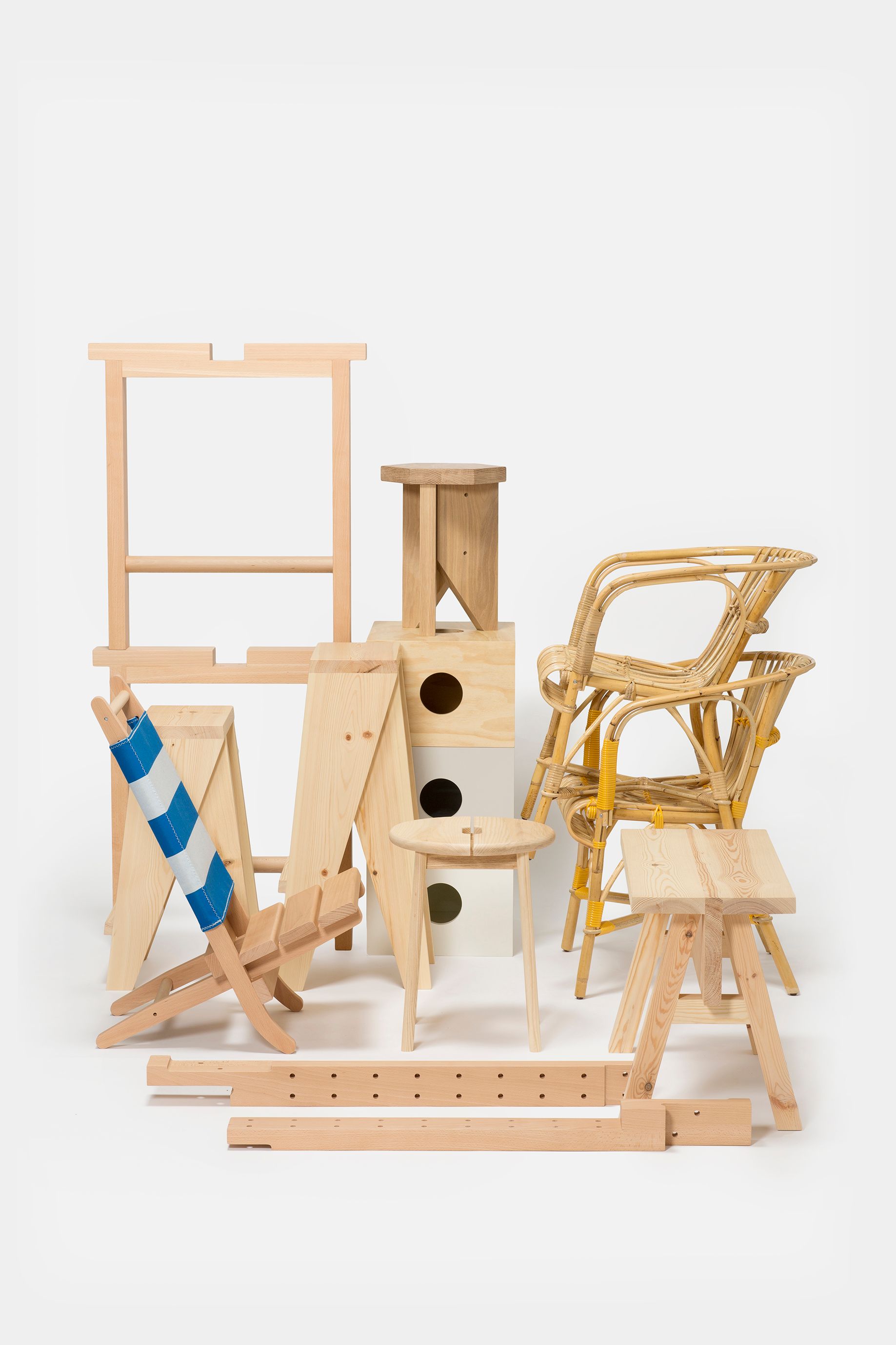 Silla 8 is the result of an exercise in which flat plywood sheets are curved under pressure and in a simple way (without machinery), using different structures as support. Instantly and without molds, this process generates what end up being seats and backrests.
