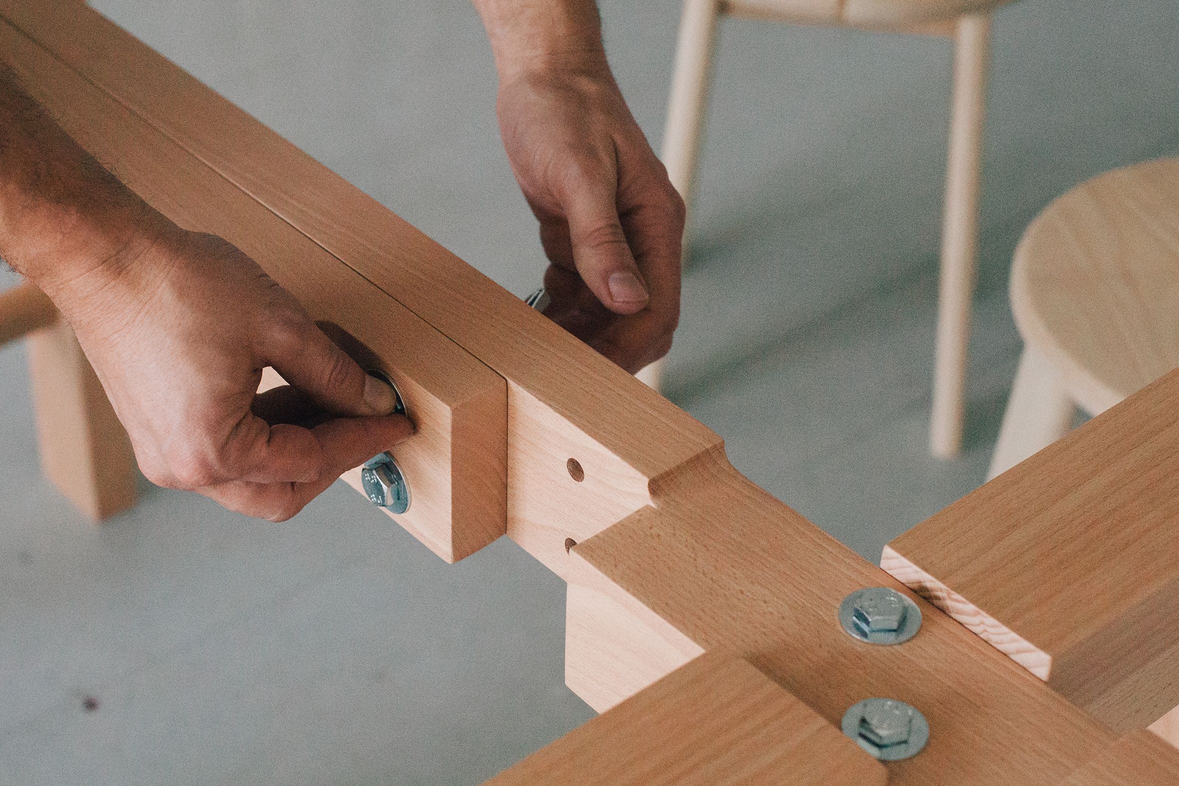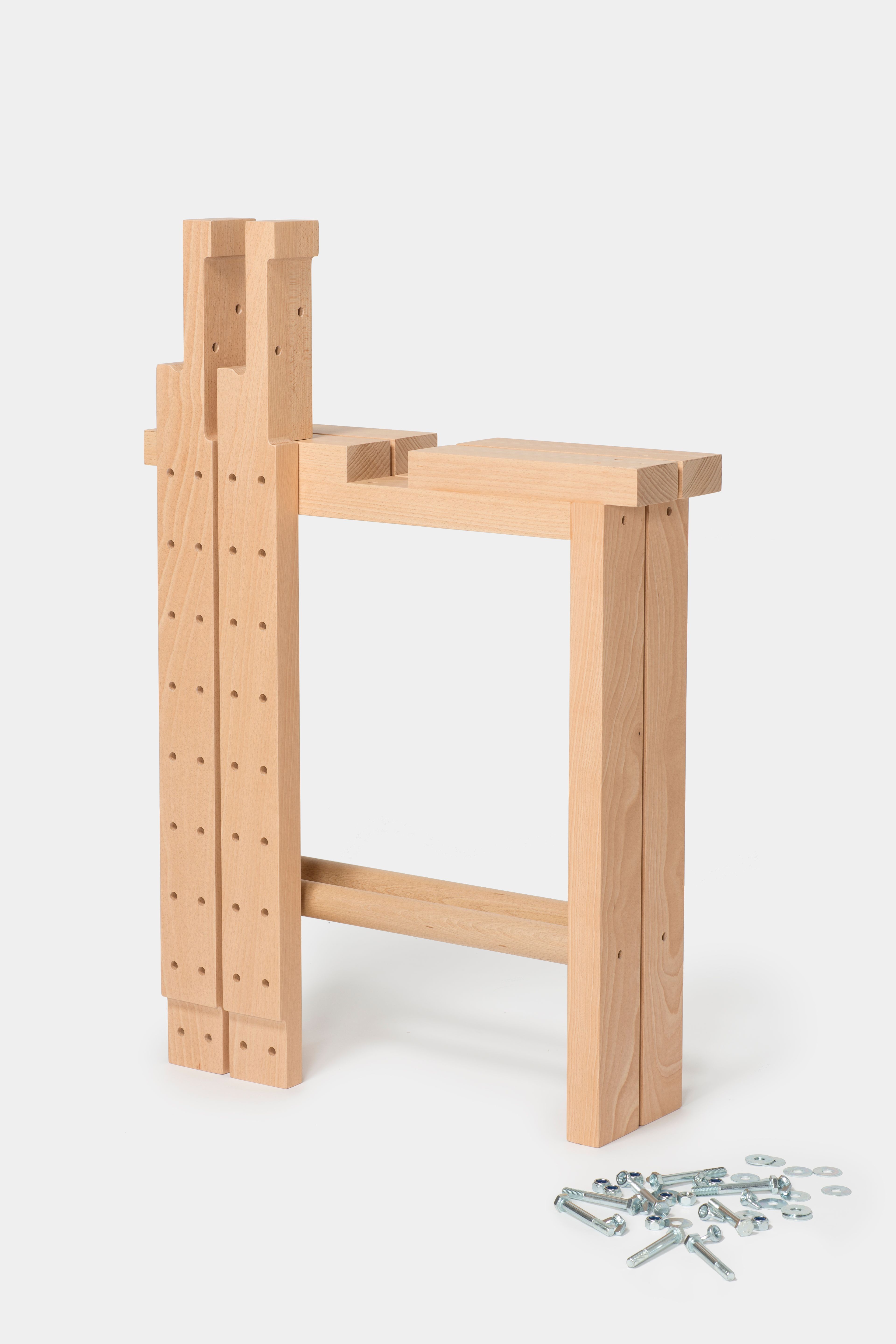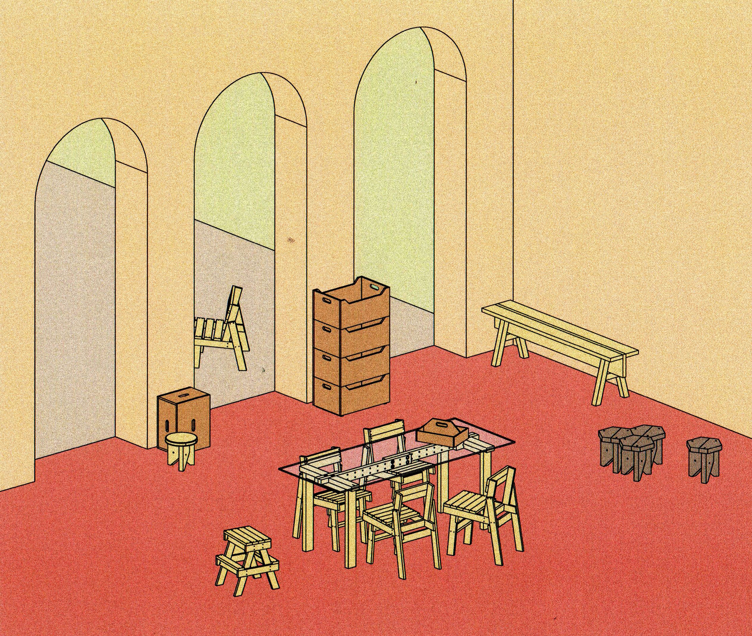 MDF is used as the sole material of the collection. Holes replace handles. Surfaces are divisible to ease transport and packaging, with the tolerances at their joints embraced as part of the design language. Altogether, it reinforces an honest and practical proposal for the collection as a whole.