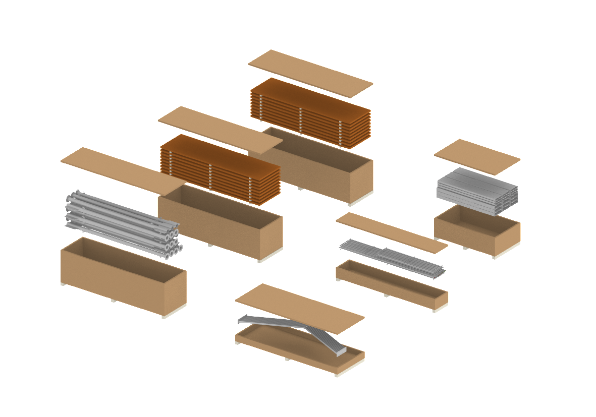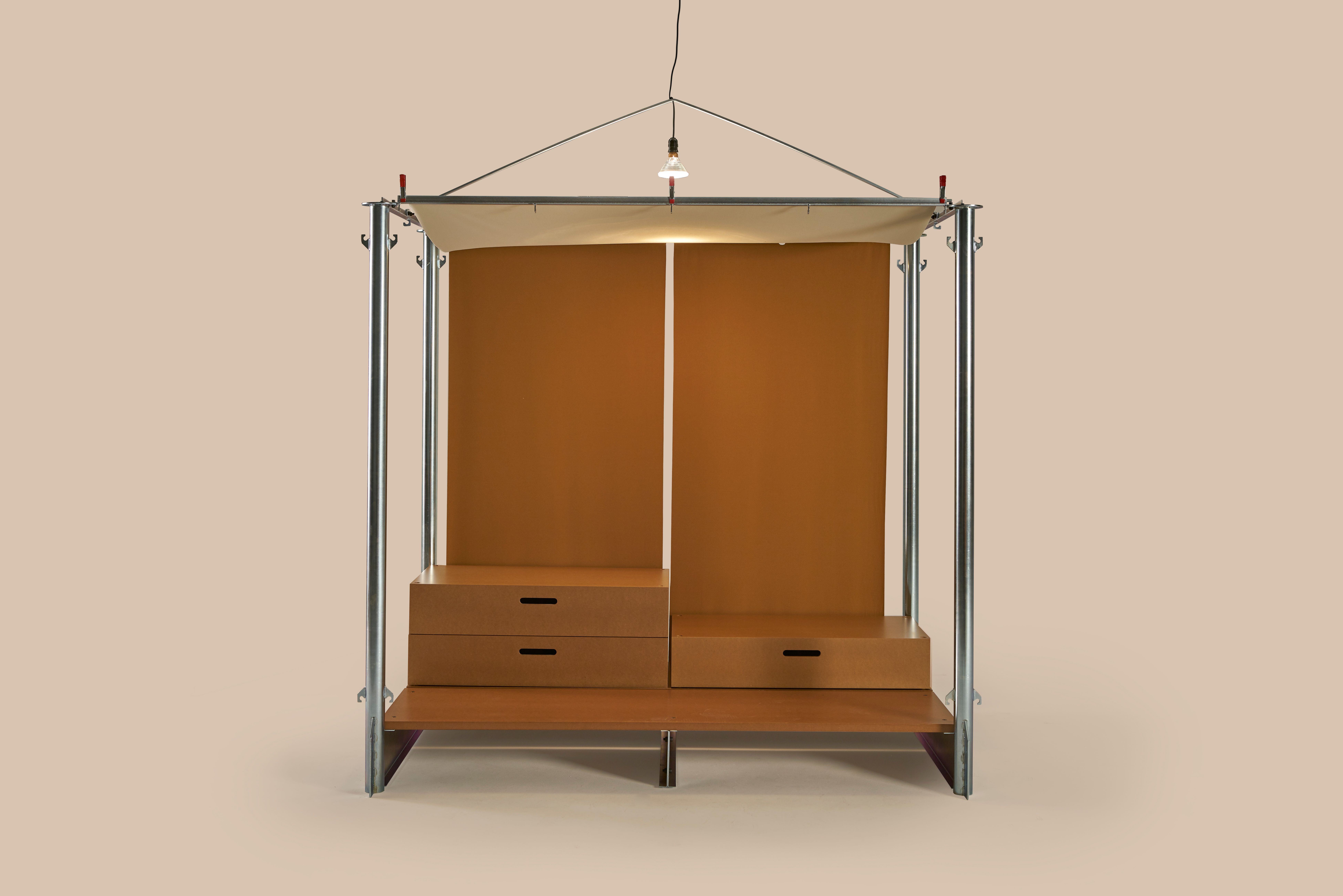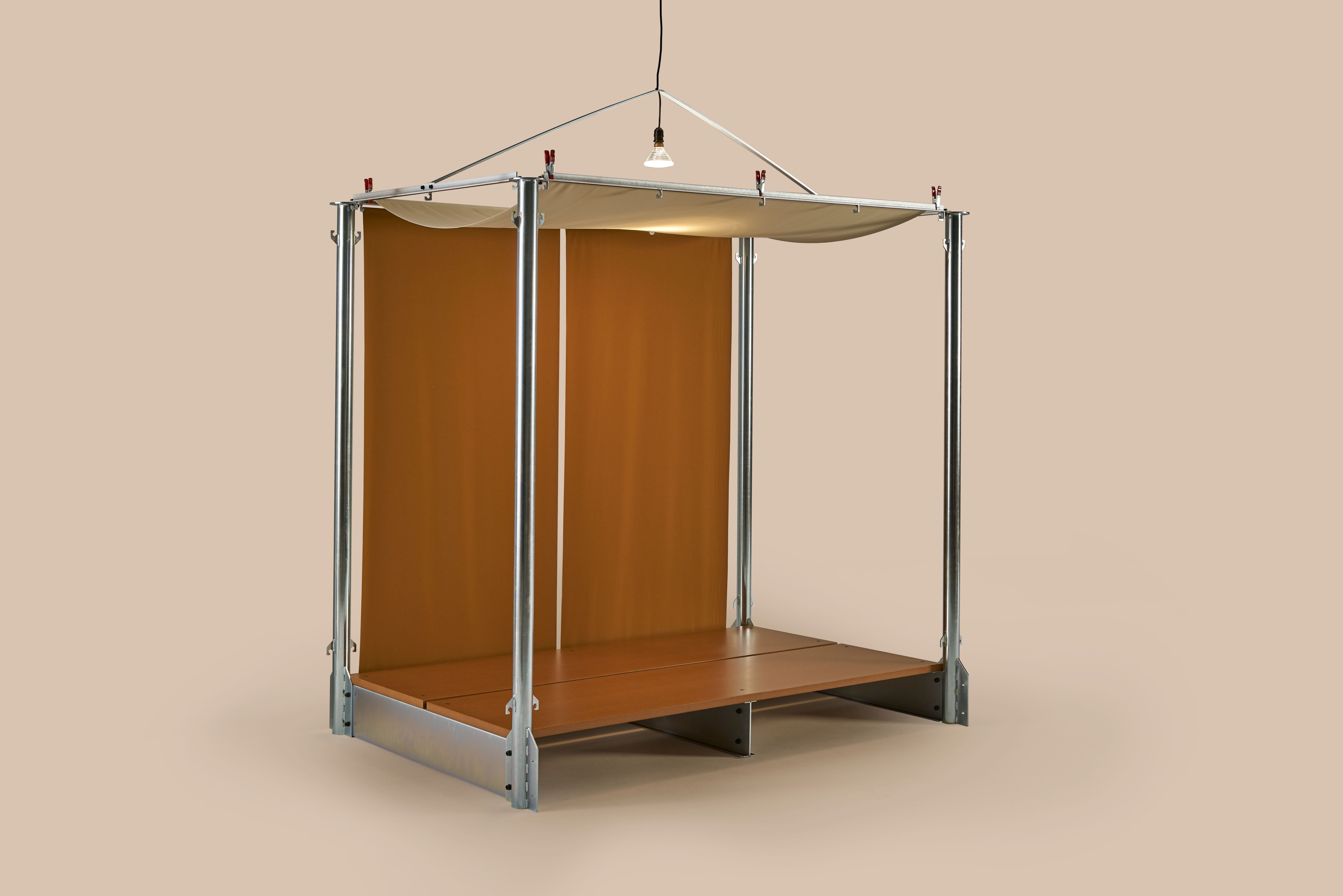 Disassembling, transportable, easy to store and reusable. With these premises and inspired by the street market stalls, improvised with fabrics, tubular structures and the scaffolding systems used in construction El Tenderete was born.