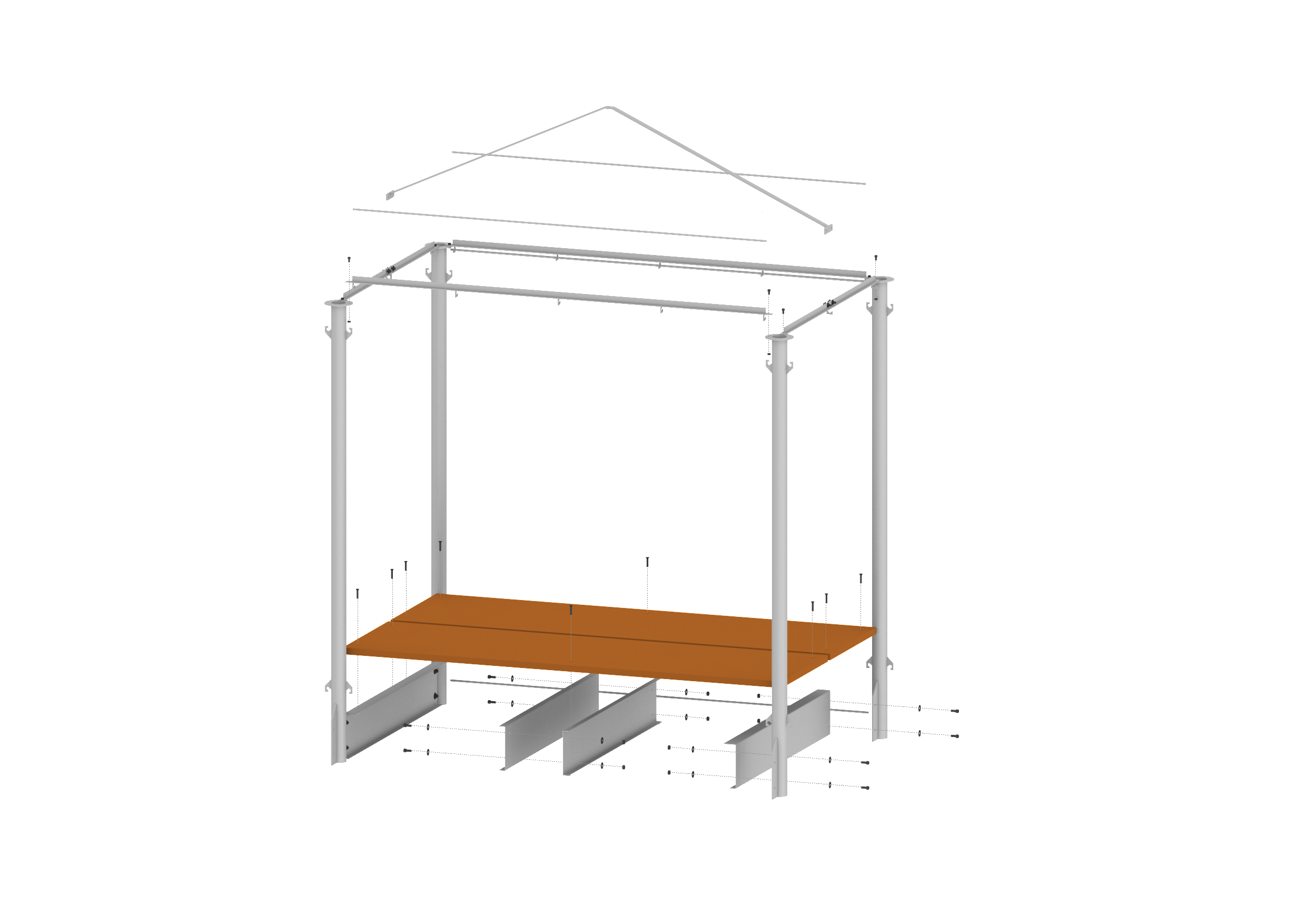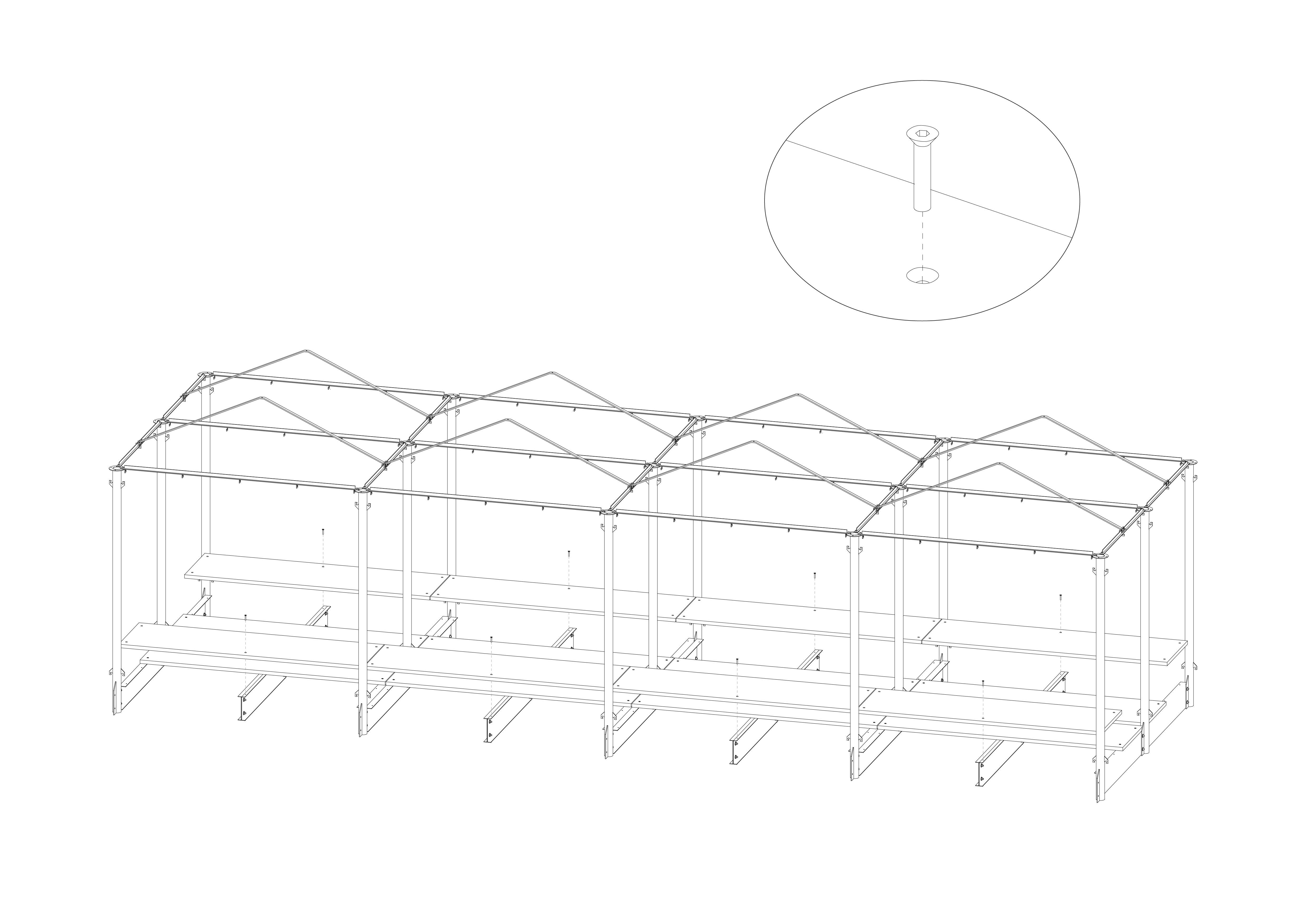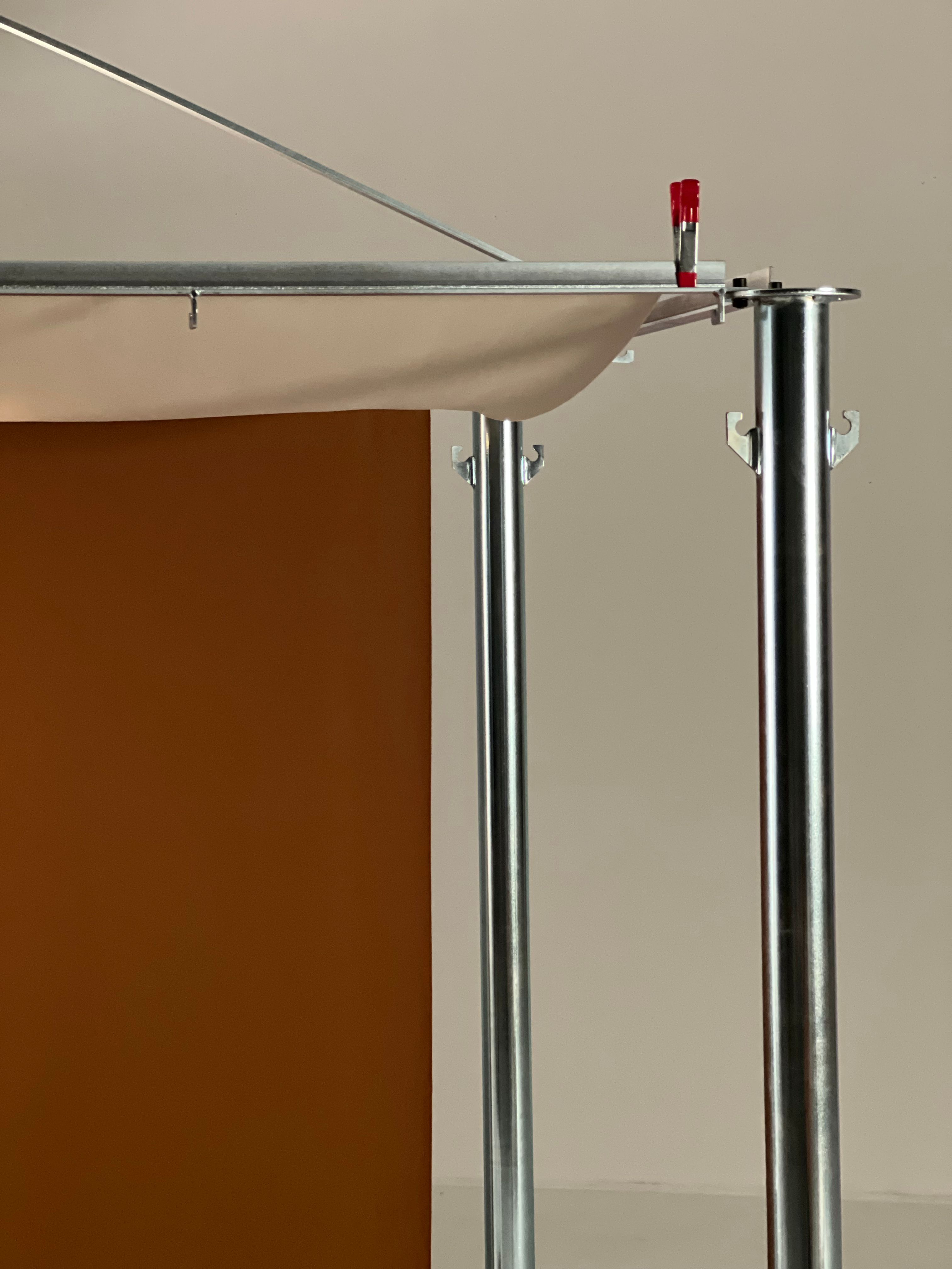 Disassembling, transportable, easy to store and reusable. With these premises and inspired by the street market stalls, improvised with fabrics, tubular structures and the scaffolding systems used in construction El Tenderete was born.
